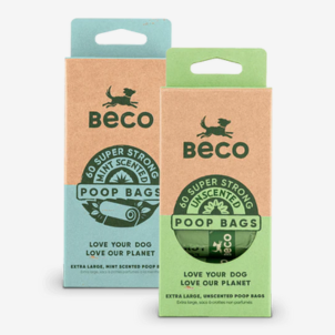 Beco is a brand of natural pet products that is stocked at Wild West Pet, and they offer a range of eco-friendly poop bags that are made from plant-based materials. These bags are completely biodegradable and compostable, making them an environmentally conscious choice for pet owners who want to reduce their carbon footprint. They also come in a variety of sizes, making them suitable for dogs of all breeds and sizes. With Beco poop bags, you can rest assured that you are not only taking care of your pet's hygiene but also doing your part to protect the planet.